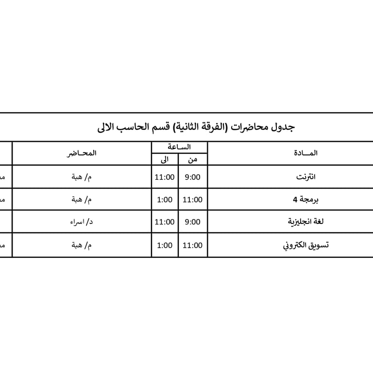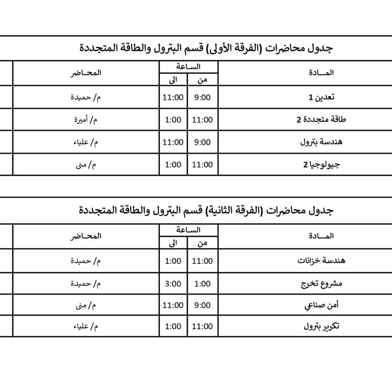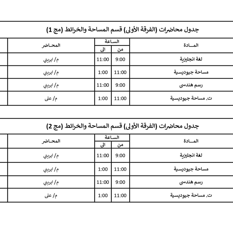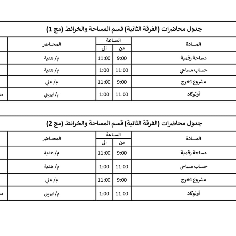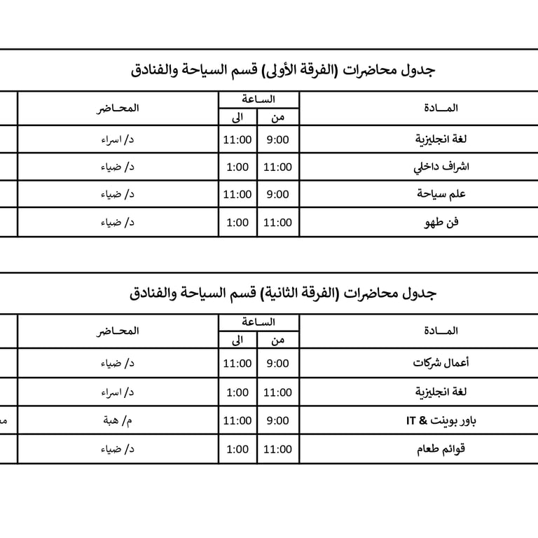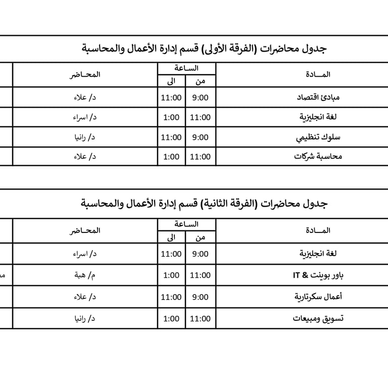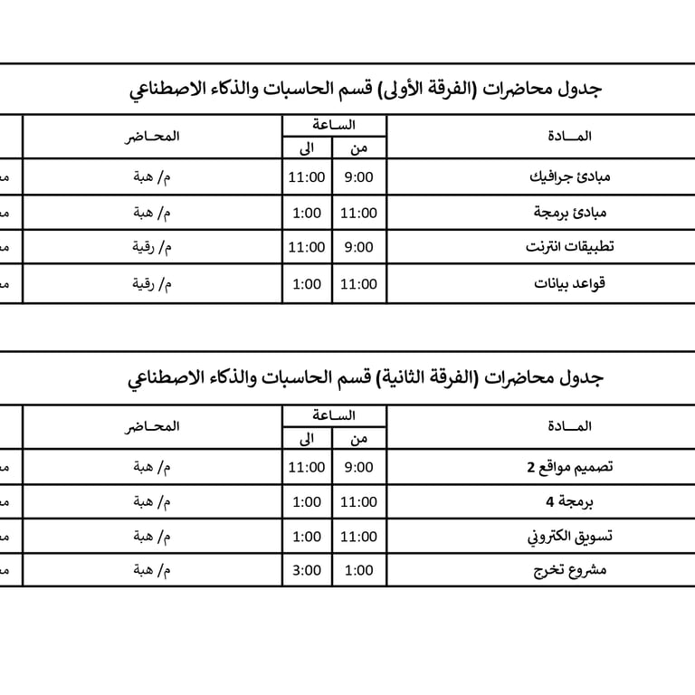 جداول محاضرات الفرق المختلفة في الأكاديمية للعام الأكاديمي 2026/2025